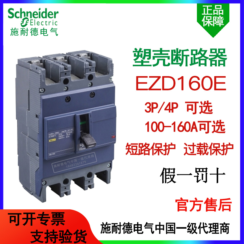 施耐德配電保護塑殼斷路器EZD160E短路過載保護3P/4P,施耐德塑殼斷路器代理商