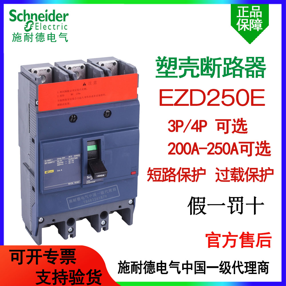 施耐德塑殼斷路器EZD250E短路過載保護(hù)3P/4P配電保護(hù)斷路器代理商